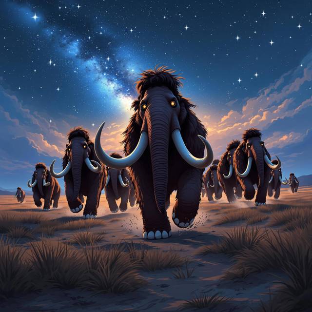 Лохматые горы мяса неслись вперёд с грацией падающего товарного поезда. Их трубный рёв сотрясал ночной воздух. Огромные, изогнутые бивни, похожие на гигантские серпы, угрожающе качались в такт бегу. А маленькие злобные глазки горели желанием затоптать всё, что не успеет убраться с дороги. Запах от них шёл соответствующий: смесь мокрой псины, прелой травы и первобытной мощи.