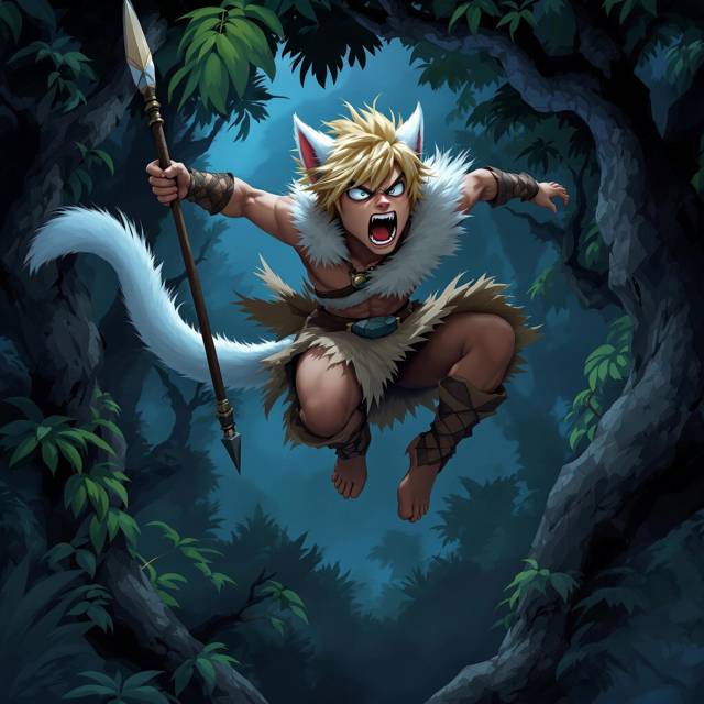 И в тот самый момент, когда я уже собирался провернуть, на меня сверху, с ветки гигантского дерева, кто-то прыгнул. Я успел лишь заметить мелькнувшую в воздухе фигуру, белый хвост и услышал отчаянный боевой клич:
