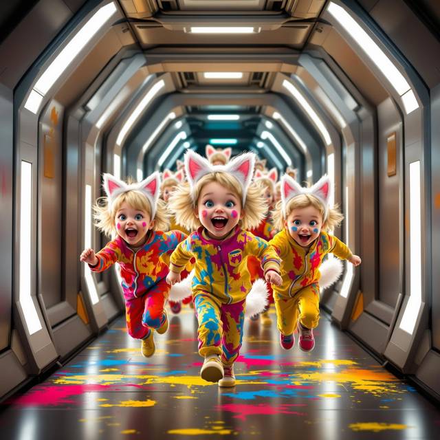 Створки дверей с шипением разъехались в стороны. И оттуда, словно прорвалась плотина, хлынула толпа маленьких, визжащих, смеющихся созданий. Детей. Светловолосых, с белыми кошачьими ушками и пушистыми хвостами. Мальчики и девочки в ярких нарядах, с перепачканными краской мордашками, неслись прямо на меня.