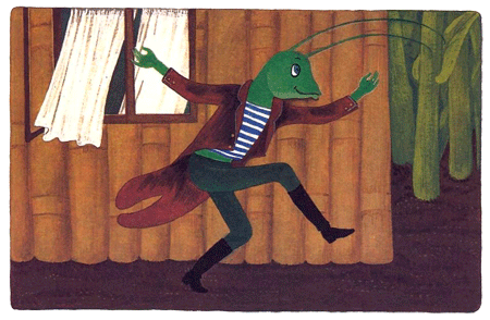 Кузнечик тут же присмирел и задумался. Он качал головой, бубнил что-то себе под нос, смотрел на небо, в землю, отбивал такт ногой, то хмурился, то улыбался.