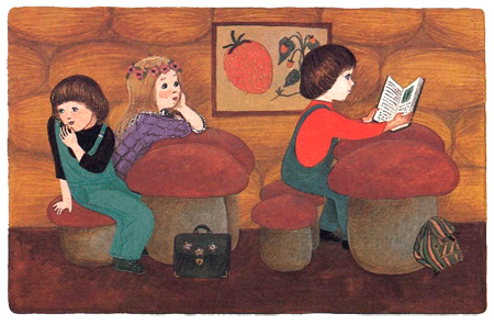 Гюльчичек, то и дело трогая свой венок на голове, размышляла: «Интересно, почему значки алычовые? Я бы придумала значки, изображающие кирку или лопату». Но спросить у дошколят она стеснялась, потому что не знала, что здесь принято о непонятном спрашивать как раз у дошколят, которые целыми днями не расстаются с книжками и очень многое знают.