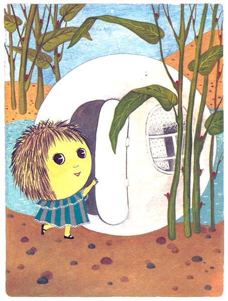 И Лягушка, подталкивая впереди себя домик-шар, подплыла к берегу.