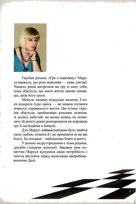Маруся ніколи не вважала його своїм. Чомусь саме тепер, коли його не стало, вперше так подумала. Спочатку він був для неї чимось незбагненним, небезпечним… Саме тим і цікавим. Роман не був схожим на жодного із залицяльників. Його впевненість і нахабство лякали, але водночас захоплювали. І до певного часу її забавляла така гра в королеву. Та коли зрозуміла, що вже безсила управляти цією грою, а може, тільки виконувати роль королеви, вирішила вийти з образу. Марусі було невтямки, що життя – не гра. У ньому кожну роль розписуєш не ти. І якщо вже погодилася (свідомо чи підсвідомо) на таку роль, то раптово змінити її неможливо. Жінка всі ці роки почувалась актрисою, що грає в театрі Романа. І останнім часом це їй навіть сподобалося. Але тільки-но відчула готовність закріпити таку роль назавжди – театр закрили.