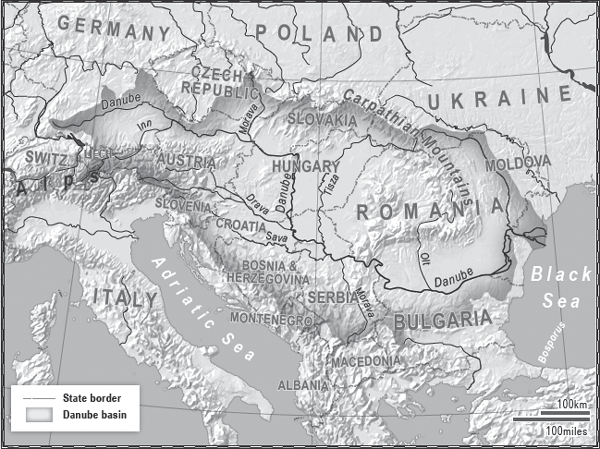 Примером может служить вторая по длине река Европы – Дунай (1780 км). Он берет начало в немецком Шварцвальде и течет на юг, впадая в Черное море. В общей сложности бассейн Дуная затрагивает восемнадцать стран и образует на своем пути естественные границы, в том числе между Словакией и Венгрией, Хорватией и Сербией, Сербией и Румынией, Румынией и Болгарией. Более 2000 лет назад по нему проходила одна из границ Римской империи, что, в свою очередь, способствовало превращению его в один из величайших торговых путей средневековья и возникновению современных столиц – Вены, Братиславы, Будапешта и Белграда. Она также стала естественной границей двух последующих империй – Австро-Венгерской и Османской. По мере того как каждая из них сокращалась, возникали новые нации, которые в итоге становились национальными государствами. Однако география Дунайского региона, особенно его южной части, позволяет объяснить, почему здесь так много малых государств по сравнению с более крупными странами, расположенными на Северо-Европейской равнине и вокруг нее.