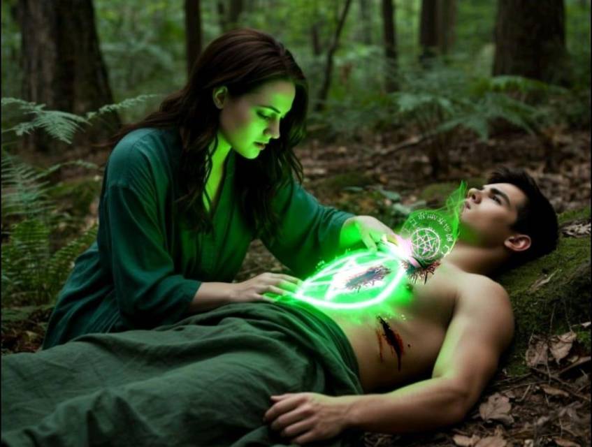 Она задумалась. При этом не останавливалась колдовать. Тело Мишеля она укутала в зелёный светящийся кокон, в который постоянно вплетала новые чары.