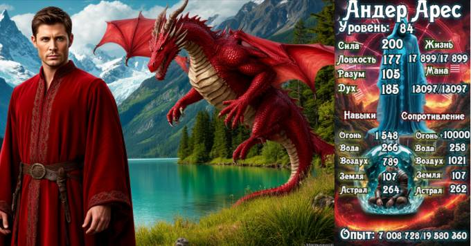 Я снова переключился на изучение характеристик, и не мог не заметить увеличение характеристики силы на 45 единиц. Про увеличение атаки стихий огня и воздуха я вообще молчу. Но когда я внимательнее рассмотрел сопротивление стихии огня, то честно… забыл, что надо делать взмах крыльями, и здорово так вильнул в воздухе, что не осталось не замеченным Карусом.