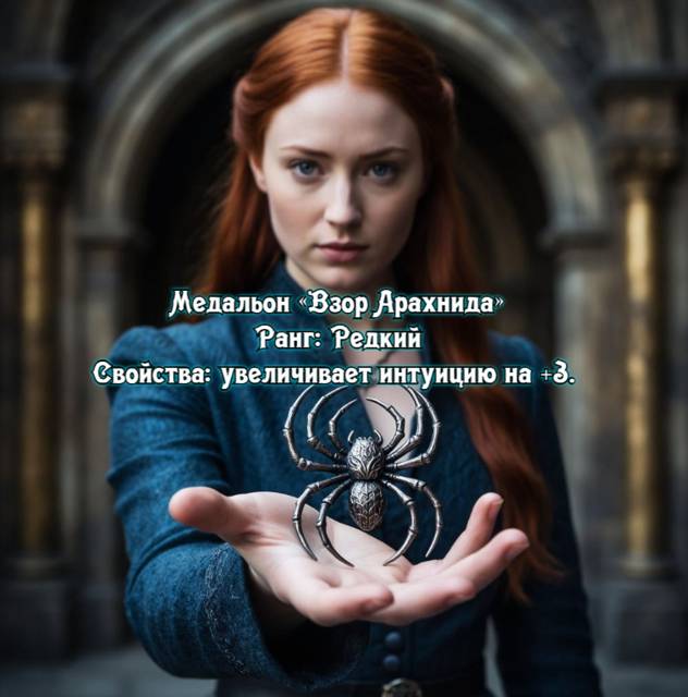 – Ого, – хмыкнул я. – Полезная штука. Пиши: «Медальон паучьей интуиции. Увеличивает интуицию на три единицы».