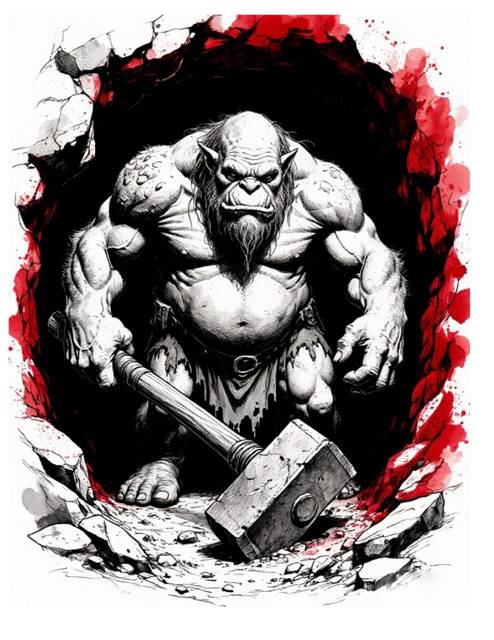 Я увидел их. Шесть. Шесть огромных, неуклюжих, но невероятно страшных тварей, выползающих из широкого бокового штрека, который, видимо, и был их логовом. Ростом они были почти вдвое выше самого крупного орка, сложенные из узловатых мышц и толстой, серой с короткой щетиной шкуры, похожей на камень. В огромных, когтистых лапах они сжимали дубины размером с небольшое дерево, утыканные острыми шипами.