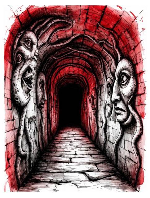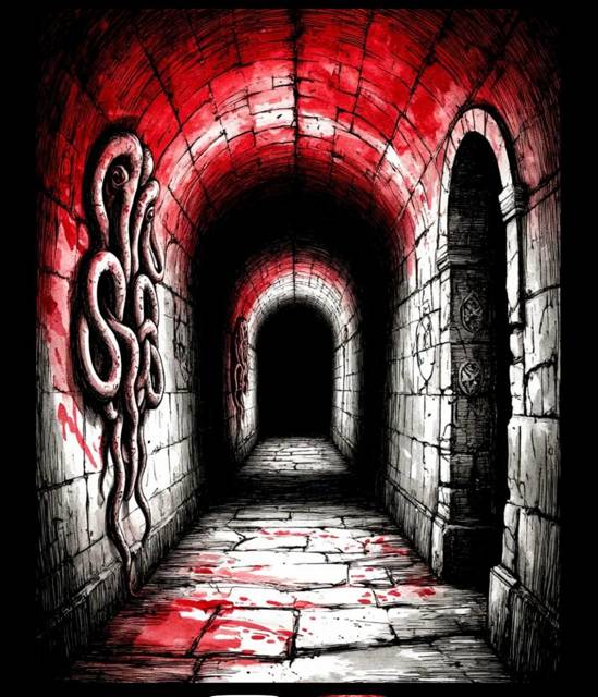 Стены туннелей здесь были другими. Если верхние ярусы Алатора, хоть и древние, носили явные следы гномьей работы – аккуратная кладка, выверенные арки, рунические символы, то здесь всё было иначе. Камень был обработан странно, будто магией, а не инструментом и в то же время с какой-то циклопической мощью. Проходы были шире, потолки выше, словно рассчитанные на существ, гораздо более крупных, чем гномы. Местами виднелись странные, полустёртые барельефы, изображавшие нечто, не поддающееся однозначному определению, какие-то сплетения щупалец, многоглазые лики, геометрические узоры, от которых рябило в глазах.