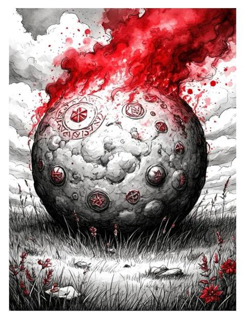 Я махнул рукой и задействовал целый взвод, чтобы они растаскивали раскалённые кости, бросали их и расчищали путь к центру переплетения. Действительно, при помощи копий удалось выкатить из плотного переплетения костей неровный мутный шар.