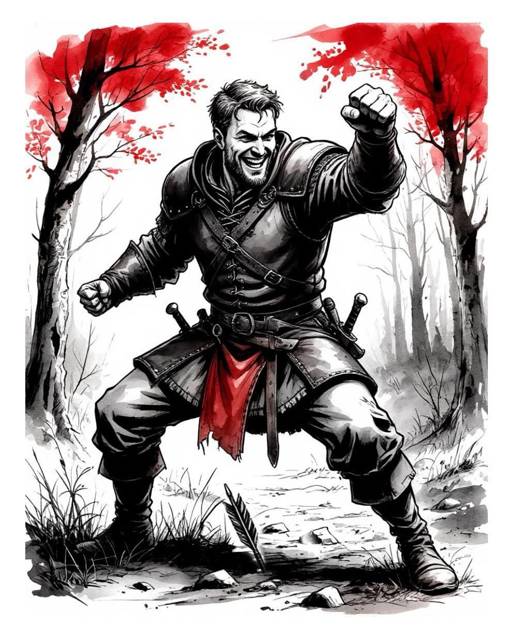 Командир наёмников на мгновение застыл, глядя на чёрную стрелу у своих ног. Его лицо исказилось. Презрение сменилось яростью. Он, явно профессионал, командир тысячи бойцов, не мог позволить себе остановить атаку. Он не мог отступить. Это был бы позор, который он не пережил бы.