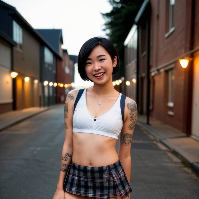 Я повернулся и увидел молодую девушку на другой стороне улицы. Она была одета в белую майку, школьную юбку и тёмно-зелёные кроссовки. Её чёрные волосы были подстрижены под каре. Её лицо было свежим и энергичным, без макияжа. Её внешность была запоминающейся, хотя я и не знал, кто она. Однако её татуировки мне показались знакомыми. Кажется, где-то уже видел эту школьницу с рюкзачком за спиной.