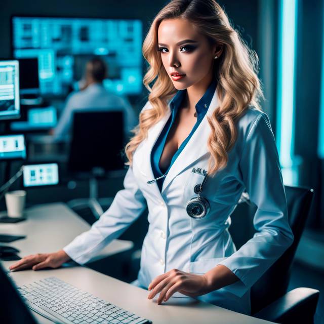 Перед нами стояла женщина с русыми локонами, высоким телосложением и изящными изгибами. Она также носила белый халат.