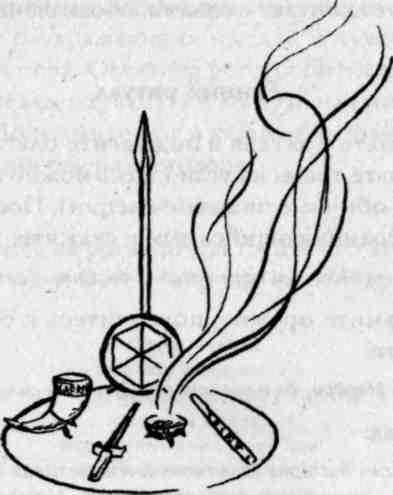 Копье, меч или молот. Маг носит оружие, которое выражает его силу. Оружие используется для создания ритуального пространства в четырех направлениях.