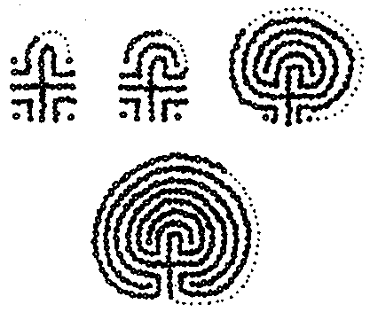Лабиринт. В Скандинавии есть сотни лабиринтов разных размеров. Они использовались в особых ритуалах. Также их называют «змеиными камнями». Это не те лабиринты, в которых можно заблудиться. Существует два основных их вида. Наиболее распространенный содержит путь к центру, в котором расположен немного более крупный камень. Из лабиринта выходят тем же путем, каким заходили в него. В менее распространенных лабиринтах – змеевидный путь, который сначала проводит человека к центру, а потом выводит наружу. Остановимся на более распространенных лабиринтах. Они созданы для танцев и вызывания транса. Змеевидные пути гипнотизируют, они символизируют мозг и сознание. Лабиринт строится на вершине воронки силы, которая содержит врата на «обратную сторону». Лабиринт символизирует Хель, подземный мир, смерть и рождение. Вход в центр лабиринта – это возвращение в изначальное чрево. Выход из лабиринта – рождение. Вход в центр лабиринта с последующей медитацией на этом месте – сильное магическое действие. Это способ общения с Хель и обретения тайной мудрости рун. Последующий выход символизирует повторное рождение. В центре лабиринта часто стояла молодая женщина. Те, кто входил в лабиринт, должны были «спасти ее» и вернуть «на волю». Такая тема присутствует во многих мифах, где женщина символизирует божественную искру, запертую в материи. В центре лабиринта можно обрести ощущение единства, увидеть сеть Урд, руны и онд, освободить душу. Путь через лабиринт можно сравнить с процессом инициации в утарк.