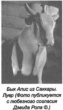 Если подсчитать общую продолжительность жизни быков, захороненных в Саккаре, эта цифра не согласуется с традиционной хронологией. Быку Апису поклонялись в Египте с древнейших времен18; он считался воплощением Птаха, главного божества Мемфиса. (Саккара – местность для погребений вблизи Мемфиса.) Апис также считался проявлением реки Нил и Хапи, бога разлива Нила. Он был символом царской власти, плодородия и силы.