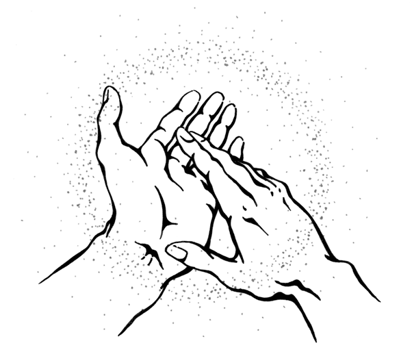 Вообще, они для нас, конечно, ни на что не похожи, ведь наши глаза не могут их различить. Чтобы получить наглядное представление о том, что такое звуковые волны и как они распространяются, придется покинуть мир видимого. Предположим, вы хлопаете в ладоши, а мы увеличиваем это движение с помощью гигантского микроскопа. Тогда мы смогли бы увидеть, что пространство между ладонями и вокруг него вовсе не пустое. Там носятся миллионы молекул воздуха. Для простоты на мгновение представим их в виде маленьких синих шариков (даже если какой-нибудь специалист по физике элементарных частиц, услышав такое сравнение, начнет рвать на себе волосы). До того, как ваши руки приходят в движение, эти шарики парят между ними, равномерно распределившись в пространстве. Через наш микроскоп мы можем наблюдать все, как в замедленной съемке: ладони медленно двигаются навстречу друг другу и сильнее сдвигают шарики. Синий цвет сгущается между руками, так как все больше молекул воздуха сталкиваются друг с другом. Затем ладони встречаются, и в этот момент раздается звук хлопка. По логике вещей, когда руки соприкасаются, между ними едва ли остается место для синих молекул воздуха. Они резко выдавливаются по бокам. Молекулы толкают соседние молекулы, которые также врезаются в соседей и приводят их в движение. Поскольку частицы не всегда отлетают прямо вперед, но и смещаются в стороны, рикошеты образуют замкнутую сферу вокруг ваших рук. Это достойно стоп-кадра. Итак, пауза!