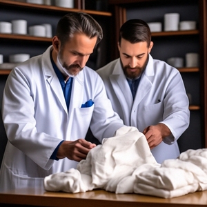 Мужчина в чистом белом халате, доставал из белого пластикового пакета, сложенные белые пеленки, чем-то испачканные, по виду и запаху, похожими на детское дерьмо. Другой, соскребал это дерьмо с пеленок, деревянной ложкой.