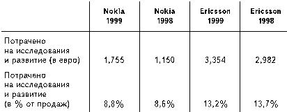 С какими препятствиями сталкивается крупная компания, работающая в сфере мобильных технологий, на пути получения наличных денег? Nokia, как фирме-производителю, необходимо постоянно осуществлять крупные капиталовложения, которые в 1999-м возросли до 1,3 млрд евро, что составляет почти 7 % объема продаж. Компаниям по разработке мобильных технологий приходится тратить много денег на исследования и развитие, чтобы убедиться, что они идут в ногу со временем и успевают в гонке за быстро меняющейся модой. Капиталовложения в эту сферу наносят существенный урон ресурсам компании. В 1999-м Nokia предоставила работу более чем 17 000 человек в 52 исследовательских центрах 14 стран.