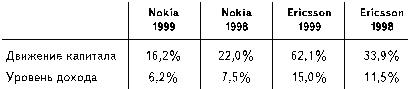 Сравнительный анализ движения капиталов Nokia и Ericsson дает нам ценную информацию. Уровень движения капитала для компании – это сравнение долгосрочного долга компании с фондами ее акционеров. Чем выше этот уровень, тем более очевидно, что долг может стать тяжким бременем для компании. Движение прибыли – это отношение подлежащей уплате доли к прибыли, из которой эта доля уплачивается. Последнее отношение часто принимается как наиболее важное отношение движения капитала, с тех пор как стало невозможно недобросовестно предоставлять ежегодный отчет держателям акций.
