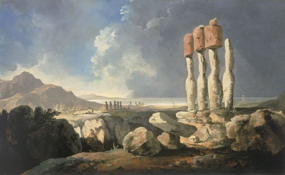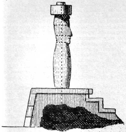 Кук и сопровождавшие его натуралисты Форстеры были зоркими наблюдателями, и, как уже говорилось, они подчеркивали, что каменные статуи – памятники старой культуры, о которых новые поколения пасхальцев ничуть не заботились. О платформах и водруженных на них статуях сообщается, что они подверглись выветриванию и пострадали как от времени, так и от вандализма; большинство изваяний было повержено на землю. Англичане дошли до заброшенных карьеров Рано Рараку – они заросли бурьяном, а сползающий сверху обломочный материал и делювий уже погребли высокие статуи у подножия по грудь, почти как мы это видим сегодня (рис. 1). Даже деревьев, необходимых для изготовления лубяной материи, стало так мало, что они не обеспечивали местных нужд.