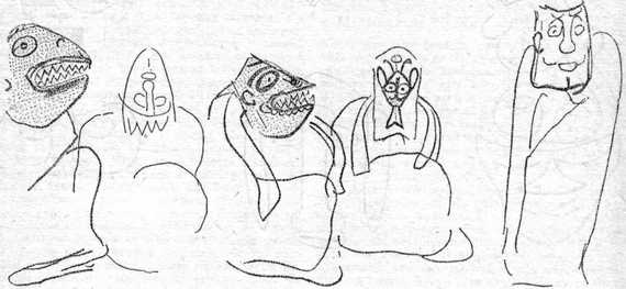 Благодаря любезности доктора Лавашери, впервые (рис. 18) воспроизводятся рисунки, сделанные для него в 1934 году на острове Пасхи информатором экспедиции Хуаном Тепано. По словам Тепано, он хотел изобразить некоторые старинные разновидности «масок», но, поскольку пасхальские маски не сохранились и тогда не было точно известно, что они существовали на острове, Лавашери и Метро не решились положиться на достоверность этого сообщения. Тем не менее Метро (1940, с. 255, 265) записал местное слово ману-уру, означающее «маска», а Лавашери сохранил в своем неопубликованном архиве необычные рисунки Хуана Тепано. Увидев каменные маски, приобретенные пашей экспедицией на том нее острове двадцатью двумя годами позже, Лавашери тотчас вспомнил про рисунки и отыскал их. Сам Хуан Тепано не дожил до нашего визита, но сравнение рис. 18 и скульптурных масок на фото 295 позволяет предположить, что Тепано либо видел эти самые скульптуры до 1934 года, либо знал другие, сходные изделия.