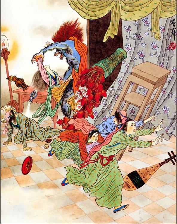 Бросив невзначай взгляд на троих учеников Танского монаха, стоявших внизу тронной лестницы, государь поразился их необычному виду.