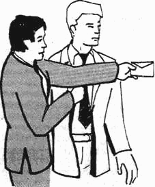 Рисунок 9. Пока карманник отвлекает внимание, его правая руки достает деньги из внутреннего кармана жертвы.