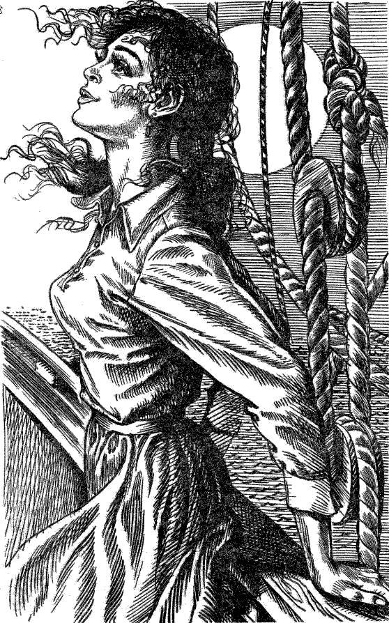 Она потихоньку выскользнула из-под одеяла и подошла к борту. Море поблескивало чернотой, как соболиный мех, каждая волна казалась отлитой из какого-то твердого драгоценного металла, инкрустированного брильянтовыми отражениями звезд; корабль оставлял за собой светящийся след, который тянулся за шхуной, словно хвост зеленого огня.