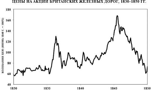 Когда рассеялся дым от пузыря 1830-х годов, парламент одобрил строительство путей протяженностью 2285 миль, менее четверти из которых было фактически проложено к 1838 году. Остаток, заведомо менее рентабельный, строили еще несколько лет, и непрерывное строительство требовало значительных новых вложений от пайщиков. Тем не менее акции выросли в цене после обвала 1836–1837 годов, и те, кто сохранил железнодорожные бумаги в разгар кризиса, ничуть не пожалели; цены на акции, стабильные до 1836 года, в том году выросли примерно на 80 процентов, а затем столь же быстро упали до уровня чуть выше стоимости акций до возникновения пузыря240. К 1841 году почти триста миль от Лондона до Ньюкасла стало возможно покрыть за семнадцать часов. «Чего еще может желать разумный человек?» – риторически вопрошала газета «Рэйлвей таймс»241.
