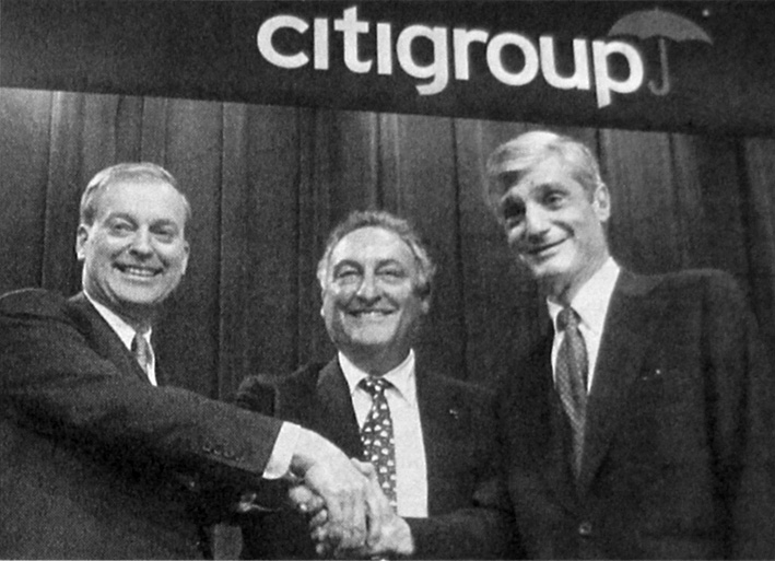 Рис. 18.В 1999 году глава «Ситигруп» Санди Вейл (в центре) при поддержке министра финансов администрации Клинтона Роберта Рубина (справа) добился отмены Закона Гласса-Стигала 1933 года