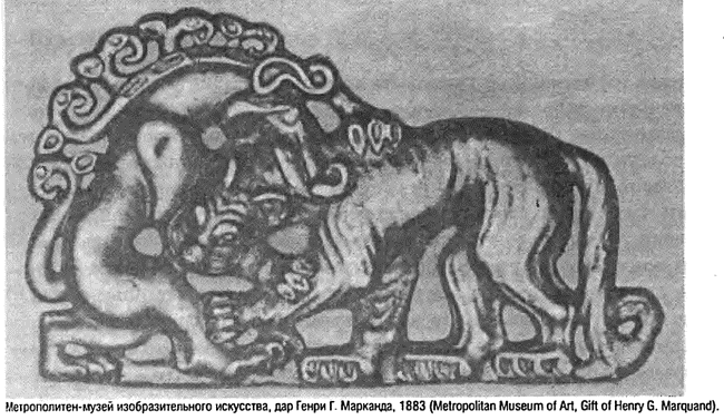 Об искусстве сюнну см. Rene Grousset, L'Empire des steppes, pp.59-62; о сарматском искусстве см. Rostovtzeff, Iranians and Greeks in South Russia, pp. 181-208; Rostovtzeff, Иге Animal Style in South Russia and China (Princeton, N.J.: Princeton University Press, 1929).
