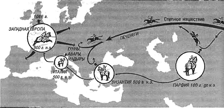 [Закрыть] сделали их моделью сначала для Византии, а через Византию для отдаленной Европы, где вооруженная кавалерия аристократов стала основой местной обороны на целую тысячу лет после развития подобной системы в Иране.