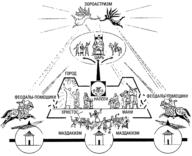 В Персии Сасанидов, как и везде в ойкумене того времени, культурные и социальные движения приобретали религиозные формы. Противостояние архаизма, ищущего возможность возродить зороастризм времен Ахеменидов, и синкретизма, вдохновенно пытающегося объединить истины каждой веры в одну великую и конечную, определяли религиозные устремления городского населения, при этом и религиозный консерватизм иранских баронов, возможно, также играл важную роль в религиозно-политическом равновесии периода Сасанидов, хотя это трудно документировать.