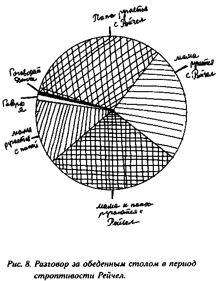 В течение этого периода разговоры за обедом в среднем сводятся к следующему. (См. Рис. 8.)