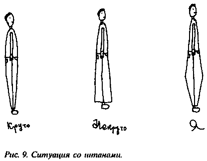 Брюки смотрятся немного странно – расширяются от верха к коленям, а затем вновь сужаются к лодыжкам, – но, по крайней мере, прогресс налицо и теперь в школе никто не посмеет ткнуть в меня пальцем. (См. Рис. 9.) Возможно, странность даже к лучшему, поскольку теперь я выгляжу как полагается, а с другой стороны, можно не бояться, что Олли решит, будто я ему подражаю.