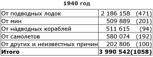 Общие потери (в английских тоннах), нанесенные противником английским, союзным и нейтральным торговым и рыболовным судам (В скобках указано количество судов):