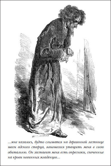 «Будешь упрямиться и не спать – вот увидишь, придет к тебе ночью злой еврей Мордухай». Так пугал меня дед перед сном. Я не мог заснуть как раз из-за этого. В своей комнатке под крышей я прислушивался к тишайшему шуму или скрипу, мне казалось, будто слышатся на деревянной лестнице шаги адского старца, явившегося утащить меня в свою обитальню. Он заставит меня есть опресноки, спеченные на крови невинных младенцев. Рассказы эти смешивались у меня в голове с другими россказнями, слышанными от мамки Терезы, древней няньки, выкормившей в свое время моего отца и еще ковылявшей тогда по дому. Мордухай пришепетывал, брызжа помойными слюнями: «Чую я, чую я, христианским духом пахнет…»