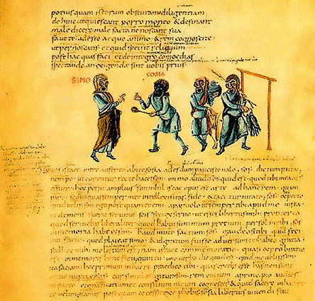 «В первой части мы говорили о трагедии, как она посредством сострадания и страха совершает очищение подобных страстей. Теперь же, как обещано, скажем о комедии (а также о сатирах и мимах): о том, как комедия, извлекая приятное из смешного, тоже способна очищать подобную страсть. До какой степени подобная страсть заслуживает внимания – мы говорили уже в книге о душе, заметив, что единственный среди всех животных – человек одарен способностью смеяться. Определим же, какому виду поступков подражает комедия, затем рассмотрим средства, которыми она вызывает смех, и эти средства суть действие и речь. Покажем, как в действии смешное рождается от уподобления лучшего худшему и наоборот, от неожиданного обмана, от всего невозможного и противоречащего законам природы, от незначительного и непоследовательного, от принижения характеров, от употребления площадных и непристойных пантомим, от нарушения гармонии, от выбора наименее достойных вещей. Затем покажем, как смешное в речи происходит от двусмысленности, то есть от употребления сходных слов для различных вещей и различных слов для сходных вещей, от заикания и путаницы, от игры словами, от уменьшительных слов, от погрешностей выговора и от варваризмов…»