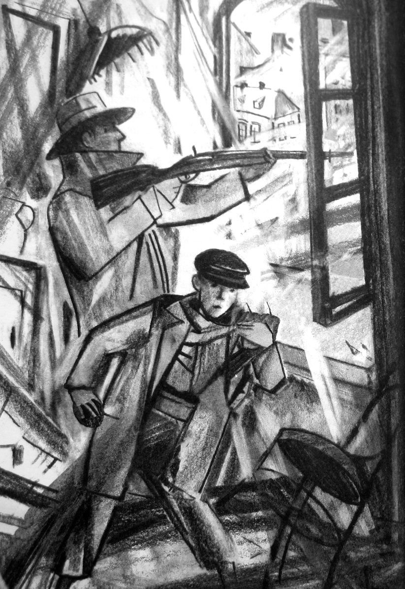 Стрельба возобновилась. Немцы стреляли во все стороны, и наши парни отвечали им огнем. Но наши стреляли редко, потому что патроны были уже на исходе. До сих пор с нашей стороны было мало раненых, но из боя на Францисканской вернулся только один парень. Он с гордостью рассказал нам, что они сражались с немцами на чердаках, на крышах и на лестничных площадках. И остановили их. Немцы отступили и там.