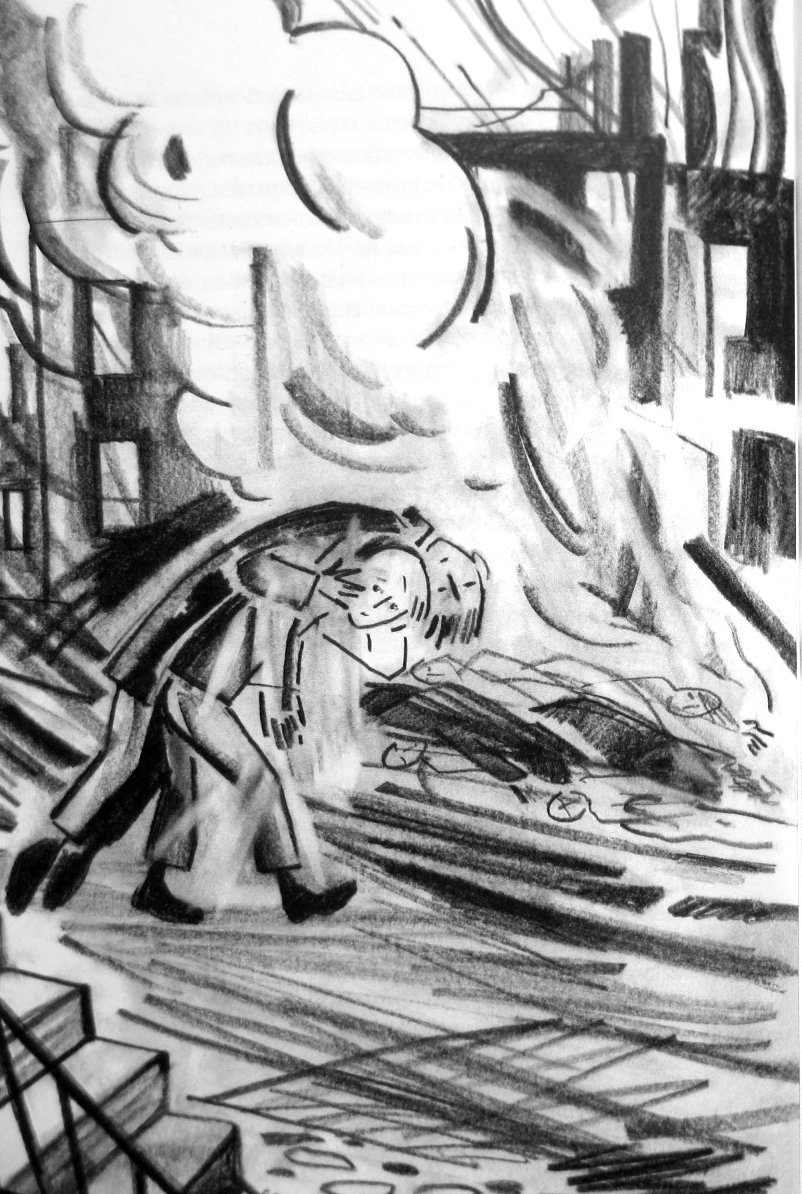 Я не имею ни малейшего понятия, как я шел. Куда входил, откуда выходил. Не помню. Просто шел. А тело пана Юзека на моей спине становилось все тяжелее. И сверху, надо мной, было много дыма. Но внизу стояла тишина. Я даже не могу вспомнить, продолжался ли все это время артиллерийский обстрел. Не знаю, сколько времени я шел – пять минут, час или всего минуту. Но в конце концов я добрался до каких-то ворот, прошел через них и почти столкнулся с бегущим куда-то человеком. Поначалу он попытался разминуться со мной, но вдруг остановился и спросил: