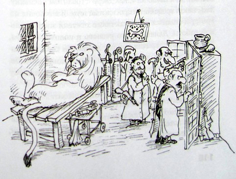 – А где лев? – тревожно спросил другой. – Зажгите хотя бы спичку!