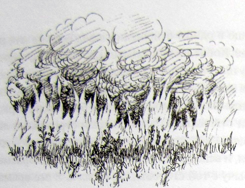Согласно моему человеческому расчету, сезон засухи начинался в июне, а уже в июле или в начале августа в саванне вспыхнул первый пожар. Большинство стад покинули эти места еще раньше, и тут остались в основном лишь антилопы, которые довольствовались малым. В тот день я первым почуял запах гари и сразу понял, что произошло. Понял, как лев, и понял, как человек. Я вскочил и стал будить своих товарищей. Они тяжело поднялись и тоже понюхали воздух. Как объяснить им, что мы должны немедленно бежать? Но огненный столб уже приближался, а вскоре появились и языки пламени, несущиеся с ветром, и всем стало ясно, что нужно уходить. Антилопы уже опережали нас. Птицы покинули кусты и деревья, издалека тяжело шагали стада слонов, мимо нас бежали другие звери, тоже спасавшиеся бегством. Странное дело – по дороге я заметил в кустах маленькую антилопу, которая не двигалась с места. Я не был голоден и попробовал прогнать ее оттуда. Но она не убежала. Наверно, должна была во что бы то ни стало дождаться мать. Даже когда приближался пожар?