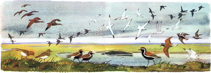 Так продолжалось несколько дней. А однажды, взлетев, птицы уже не опустились на землю. Наступила пора отлёта на север – в далёкую тундру, на их родину пришла весна. И птицы отправились в путь.