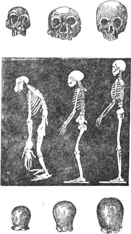 Если во времена Дарвина и Энгельса наука располагала только черепной крышкой неандертальца, то теперь в ее распоряжении имеется огромный, тщательно проверенный и изученный материал, заполняющий все основные звенья в физическом развитии человека со времени его выделения из царства животных. Мы имеем налицо непрерывную цепь развития от ископаемого антропоида до современного человека.