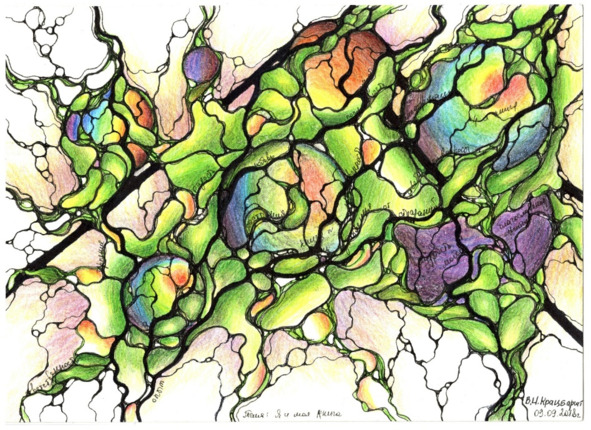 Мое понимание метода проникало глубоко внутрь. Получалось рисовать сразу, и каждая работа уникальна по-своему. На начальном этапе рисования для меня были важны и дороги те состояния, которые я проживала. Были важны откровения, которые приходили в период выполнения алгоритма по пунктам и применение их в событиях своей жизни. Трансформации происходили не только со мной, но и с окружением, – с родными и близкими, со знакомыми и не очень. Изменения происходили со всеми, с кем я общалась.