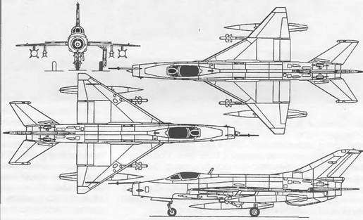 Истребитель J-7 постоянно совершенствуется; на его базе создано несколько модификаций: J-7A, J-7B, J-7M, J-7PM – экспортные варианты (усовершенствовано оборудование, возможно применение оружия западного производства, в том числе УР R.550, «Мажик» и AIM-9 «Сайдуиндер»); J-7III (1984 г.) – истребитель-перехватчик (оснащен радиоприцелом, многоцелевой РЛС JL-7 и в общих чертах соответствует истребителю МиГ-21 ПФМ); JJ-7 (1990 г.) – учебно-тренировочный самолет, близкий к МиГ-21 УТИ (усовершенствовано оборудование и вооружение, особенно для экспортных вариантов) Совместно с американской фирмой «Грумман» разрабатывается истребитель «Супер-7» с усовершенствованным вооружением, боевые возможности которого должны приближаться к возможностям истребителя F-16A.