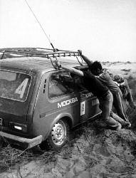 Посреди пустыни. На сотни вёрст кругом – абсолютное безлюдье. Ни колодца, ни деревца. И сумасшедшая жара – чувствуешь себя как рыба на сковородке (репродукция из журнала «Автоэкспорт информирует»).