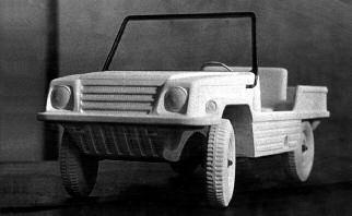Гипсовый поисковый макет Ю. Данилова (масштаб 1:5,1971 год) воплощал в себе прообраз как «Нивы» (в её открытом варианте), так и армейского джипа.