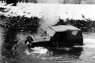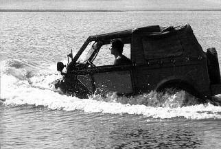 Да и перед плавом теперь можно вообще не вылезать из машины. Подъехав к воде, дергаем за ручку, наглухо закрывая упомянутый щиток (верхний воздухозаборник пока тоже закрыт, то есть мы входим в воду с герметично закрытым передком – это очень важно!). Потом, уже на плаву, тянем за другую ручку – откидывается крышка верхнего воздухозаборника, которая служит на плаву заодно и волноотражателем. Просто и эффективно.